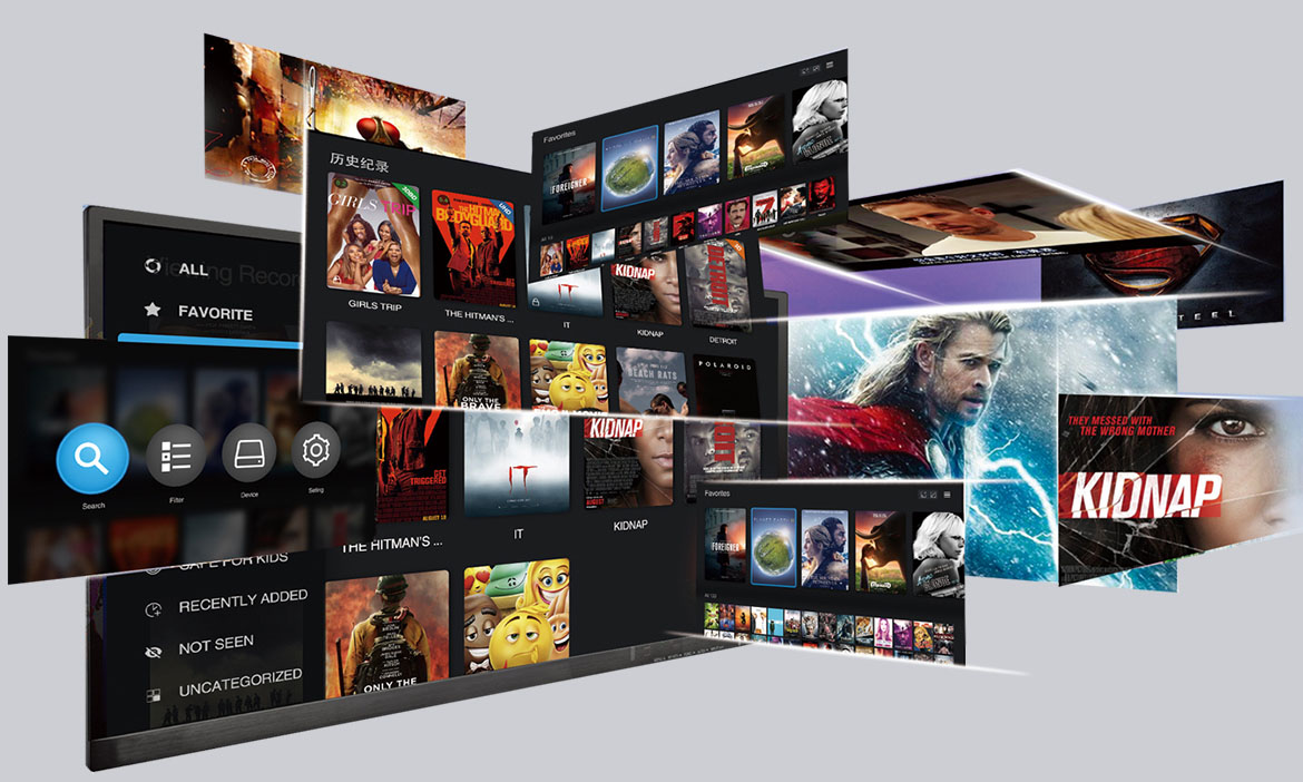 Unparalleled Poster Wall function, automatic scanning, automatic category series films and TV series, can be customized layout.